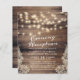 An invitation for your evening reception! A classic wedding theme with a rustic wood background, faux vintage lace, and string lights. Your event details appear in formal typography. The coordinating collection is available in our store. Feel free to message me with any questions, I'll be happy to help! :)