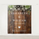 This string lights rustic barn wood with greenery boho wedding backdrop can be personalised with your information in chic typography. Designed by Thisisnotme©