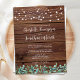 Invite friends and family to your wedding with these elegant yet rustic wood with string lights and eucalyptus greenery wedding invitation cards. These unique rustic county wedding invitations feature elegant white string lights on barn wood with with botanical greenery design with with botanical greenery design with wedding website qr code for easy RSVP's... Personalise these rustic wedding invitations with names, wedding date, and location. See our wedding collection for unique wedding invitations, wedding photo albums, guest books, party gifts, and more! COPYRIGHT © 2020 Judy Burrows, Black Dog Art - All Rights Reserved. Rustic Wood String Lights Greenery QR Code Wedding Invitation Postcard