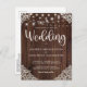 Rustic Wood String Lights Lace Wedding Invitation Postcard