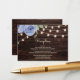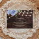 Rustic dark wood with periwinkle blue floral and twinkling string lights wedding reception enclosure card. Contact us for help with customisation or matching products.