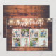 Happy Holiday rustic wood background with string lights background that can be customised with 8 photos.