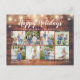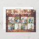Happy Holiday rustic wood background with string lights background that can be customized with 8 photos postcard.
