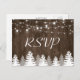 Rustic Wood String Lights Pine Trees Wedding RSVP Reply Card.
