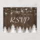 Rustic Wood String Lights Pine Trees Wedding RSVP Invitation Postcard