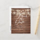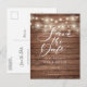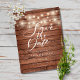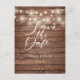 This rustic save the date card features pretty string lights and an elegant script save the date above your details set in elegant typography on a rustic wood panels background. The reverse has additional save the date details, including your wedding website, with your return address and space for your recipient's address. Designed by Thisisnotme©