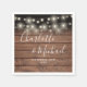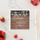 Rustic wedding napkins featuring pretty string lights and signature style names on a wood panels background. Designed by Thisisnotme©