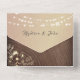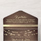 Set the tone for your fall or country wedding with this rustic all-in-one invitation featuring a warm woodgrain background, string lights, and golden floral accents. The twinkle lights and floral illustrations add a romantic, barn-style charm. Includes space for RSVP, guest info, and a full-back photo! A beautiful blend of casual elegance and personalised details.