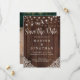 Rustic Wood String Lights and Lace Wedding Save the Date Photo Announcement featuring a rustic wood background with twinkling strings of lights and vintage style lace in the bottom corners. The words "Save the Date" are set off in elegant yet rustic typography, making this the perfect design for your boho or country wedding. Add your photo to the back for the perfect announcement of your exciting news!