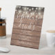 Rustic Wood String Lights Wedding Signature Drinks Pedestal Sign