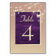 This elegant and modern table number card features a rustic purple wood background, beautifully adorned with gold gilded floral lace and delicate string lights. Perfect for adding a touch of sophistication and charm to your wedding décor.