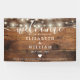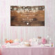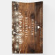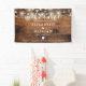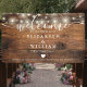 This rustic wood string lights wedding welcome banner sign can be personalised with your information in modern typography. Designed by Thisisnotme©