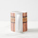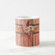This mug features a collection of rustic wood samples and autumn flowers in an earthy rustic pink-brown hue.