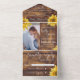 Rustic Wood Sunflower Monogram Photo Wedding All In One Invitation