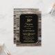 A rustic gold bordered wood surprise 30th birthday dinner party invitation with gold text on a black background.