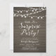 Celebrate your special day with this rustic surprise party invitation! This design features a stylish script typography and light strings on a rustic wood background. Perfect for a garden party, barn party, or any surprise party.