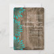 | Vintage Rustic Barn Wood with Teal Flowers Wedding Invitations with Rounded Corners. A distressed brown barn wood design with teal flower line art on the edge. These are great wedding announcements for a country wedding, barn wedding, or vintage theme wedding. You can also order this invitation with regular square corners if you would like.