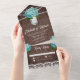 Rustic Wood Teal Hydrangea Mason Jar Wedding All In One Invitation