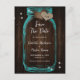Rustic Wood Teal Mason Jar Wedding Save The Date Announcement Postcard