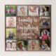 Create your own photo collage jigsaw puzzle with 12 of your favorite pictures on a wood texture background.Personalize with family name and established date. The "Family is Everything" quote adds a unique touch to the photo jigsaw puzzle.The family photo collage jigsaw puzzle is perfect for solo or family time activity.