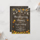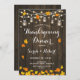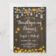 Rustic Thanksgiving Dinner Invitation with dark brown wood pattern and string fairy lights. Features mason jars and fall autumn leaves. Perfect for a rustic style party.