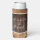 Rustic Wood Tone Monogram Beach Seltzer Can Cooler