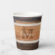 Rustic Wood Tone Monogram Stripe Paper Cups