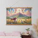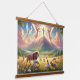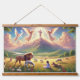 Bring a touch of divine beauty and inspiration to your space with our Rustic Wood-Topped Wall Tapestry. This horizontal landscape tapestry features vivid colors, crisp lines, and a stunning depiction of an idyllic scene with angels, animals, and a celestial figure on a mountain. It includes a rustic wooden frame at the top and bottom, adding a unique and charming touch to this visual masterpiece. Made from 100% lightweight polyester, the tapestry is soft to the touch, easy to hang, and spot-clean only.