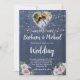 This lovely watercolor Rustic Romantic Wood Twinkle Lights Photo Floral wedding invitation features a rustic slate blue wooden background with pink and white flowers, with just a touch of purple, highlighted by a photo of the bride and groom in the double heart. Touches of calligraphy are a perfect accompaniment to the beautiful flowers. A lovely design choice to set the tone for your wedding celebration. For any design question or additional customisation and / or matching items, just send a chat and we'll be delighted to assist. View the collection link on this page to see all of the matching items in this beautiful design.