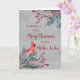 Merry Christmas for mother in law card with winter watercolor foliage, cardinal, rustic wood pattern and thoughtful verse.