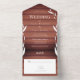 A rustic wood all-in-one wedding invitation. This invitation has a brown wood background and is decorated with white leaves. It includes the invitation as well as a tear-away RSVP card. Simply add your information, add this invite to your cart, and enjoy your beautiful wedding.