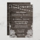 Rustic Wood Wedding Invitation with String Lights and Lace |