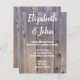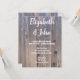 Wood wedding invitations on a photo background of a rustic weathered grey fence