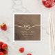 Simple, elegant, rustic wood personalised wedding napkins with gold rope heart and modern calligraphy script.