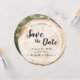 Rustic wood Wedding Save the Date Photo Wood Grain Invitation—a blend of natural charm and romantic elegance, perfectly tailored to your rustic wedding theme. This unique round card captures the essence of wood grain, emulating the rustic disc slices often seen at beautiful and romantic weddings. A transparent white overlay is applied to keep the text readable.
