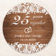 Rustic Wood & White Lace Anniversary Round Paper Coaster