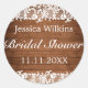 Rustic Wood & White Lace Bridal Shower Classic Round Sticker
