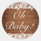 Rustic Wood & White Lace OH BABY Classic Round Sticker