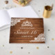 Rustic Wood & White Lace Tiara Sweet 16 Birthday Guest Book