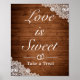 Love is Sweet, Take a Treat wedding sign. Rustic style with wood planks background and white lace decor. More items are available in this style in our store. You can edit the design further, change colours, fonts and add extra text by clicking "customise further" link.