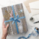 Rustic Wood with Blue and Gold Snowflakes Christmas Gift Wrap.