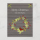 Rustic Wood with Christmas Wreath and Sweet Bird Holiday Postcard