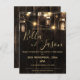 Rustic Wood With String Lights Lanterns Wedding Invitation Postcard
