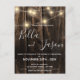Rustic Wood With String Lights Wedding Invitation Postcard
