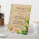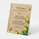 Rustic Wood Yellow Floral Butterfly Wedding Safety Pedestal Sign