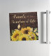 Refrigerator magnet greeting card for a friend with a rustic dark brown wood design, decorated with bright yellow sunflowers and a whimsical script font, "Friends are the sunshine of life."