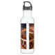 Water bottle with a scenic looking wooden bridge leading into a pathway surrounded by forest trees changing colour.