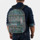 This cool Backpack features details from an old wooden gate with wrought iron decorations. Blue tones, rustic design. Modern and cool backpack for travelling, schooling and more! Great gift for boys and men!