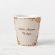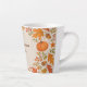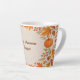 Autumn leaves, berries, and acorns framed by a light ivory wooden background for your customisable hello autumn and your name on a latte mug. Rustic, hygge and cosy fall latte mug for your kitchen or living room.