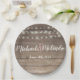 Enjoy an modern rustic wood background with twinkle light to give this invitation a romantic and fun feel. See our shop for a full collection of wedding supplies with this theme.
